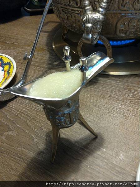 最後店家每桌有送可爾必思冰沙及番茄夾蜜餞,冰沙裝盛如下(一度喝錯邊被店員提醒